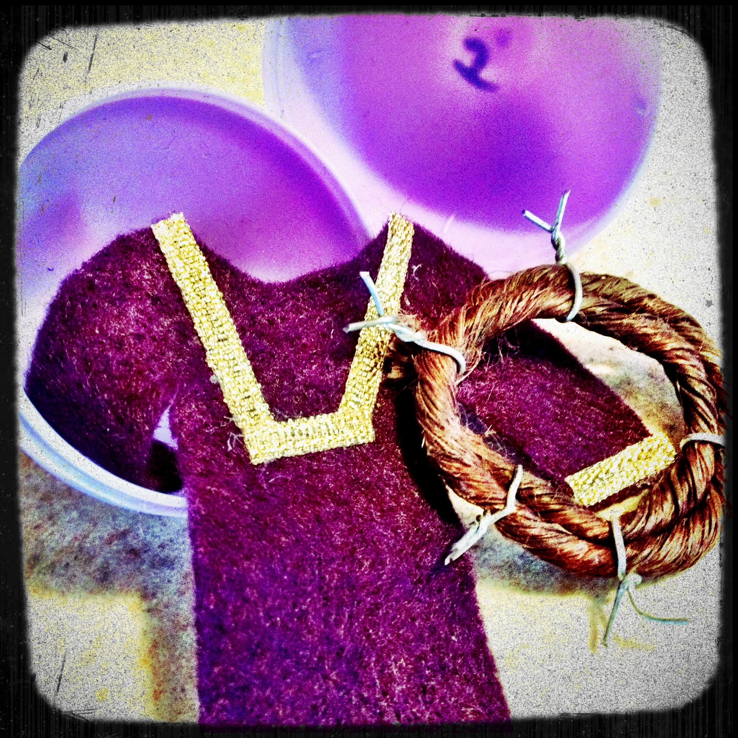 - A piece of purple fabric and/or a “crown of thorns” (see image below)