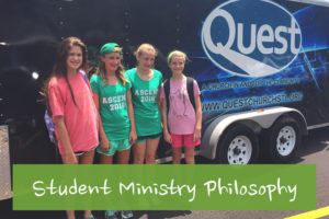 Quest Students is our youth group that engages all students from 6th-12th grade and is held on Wednesday nights from 6:30-8:30pm and includes time to hang out together, play games, hear a message and learn, worship and a breakout time for small groups. Quest Students meets the first 3 Wednesdays of every month and takes the 4th Wednesday off. If there is a 5th Wednesday, they break out into small groups for the entire evening. Contact your group leader for those details, You can always contact Johnathan Walker if you have any questions.